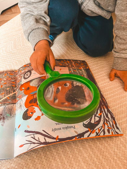 Using a magnifying glass and a selection of halloween-themed books, go on a sound hunt through the books and see how many of letters you know are in the books. You could mark or tally them up as you go to see how many you can find the most of!
